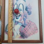 Vintage wind-up music box picture featuring Ringo the Clown, artwork by Arthur Sarnoff. This charming 8" x 10" framed print includes a built-in wind-up music mechanism (typically activated from the back or side).